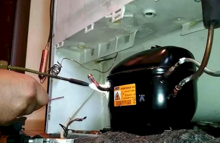 Если компрессор гудит, но не запускается, это может быть связано с заклиниванием механизма. Постепенно проверьте такую возможность, протянув на компрессоре руку – он должен быть теплым. Охлаждение в этом случае может означать, что компрессор требует замены из-за механического излома.
